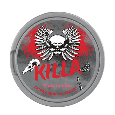 Killa Watermelon Snus heeft een sterke nicotinekick. De frisse watermeloen smaak met een vleugje munt geeft een zomers gevoel. Geschikt voor ervare...